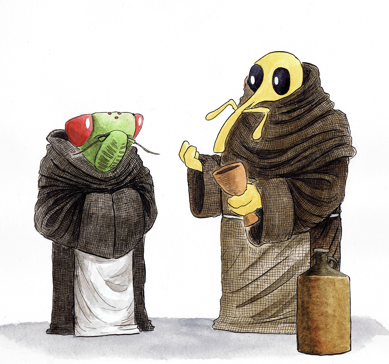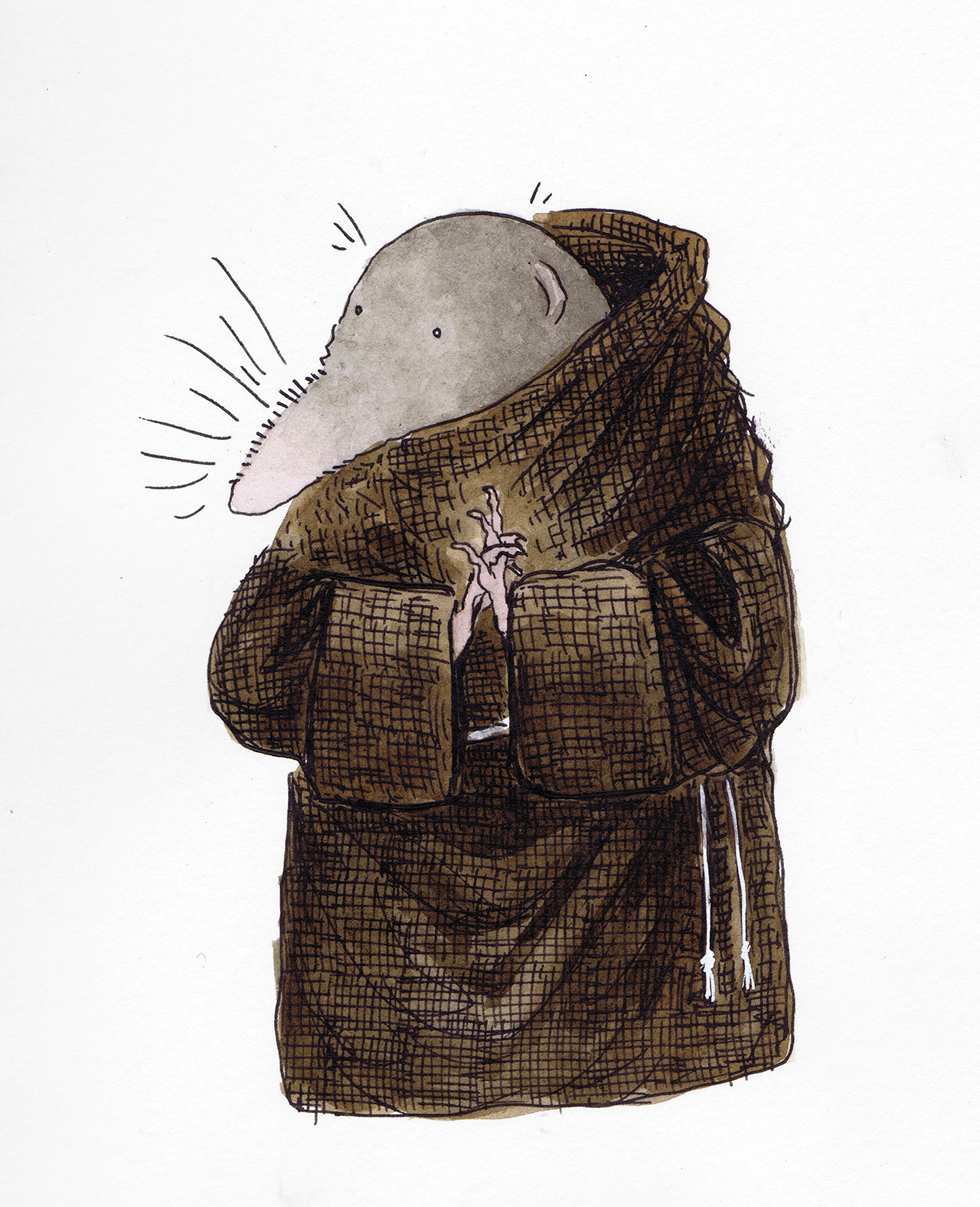 2025 March 2025: Started this year's gallery. More bugs, more shrews, more silly little critters in robes. Just having some fun drawing cute shit while the world burns down. October 2025: After way too long of a hiatus, I finally added almost 90 new drawings I'd been sitting on. I've been trying to get in the habit of sketching in bed for at least 30 minutes each night, and then every Saturday my partner and I will hang out at our favorite coffee shop and work on art together for a few hours, during which time I'll ink and color the most promising of the last week's sketches. As a consequence this is shaping up to be my most artistically productive year since 2020! My partner and I have also been developing material for a critter monk zine for much of the year, so there's a lot more funny little guys in robes. Finally, I'm particularly proud of the watercolor piece I put at the top of the gallery, dedicated to my recently passed grandmother, a talented quilter and artist and all around great human being. January 2026: Finished uploading the last of this year's work. After some reflection, this feels like not just an especially prolific year but also a significant one in terms of my development as an artist or illustrator or whatever you want to call it. Of course there are still a ton of skills and techniques I seriously need to work on, but compared with 12 months ago I feel much more confident with many aspects of color, anatomy, and clothing, among others. A truly horrible and miserable and depressing year for the world but at least there are some things in my personal life I can cling onto and feel good about. |