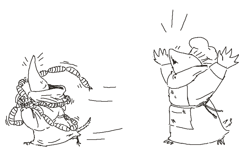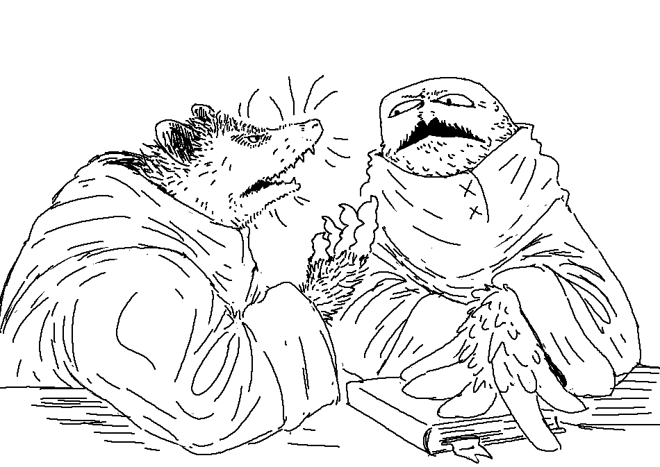 2025 March 2025: Started this year's gallery. More bugs, more shrews, more silly little critters in robes. Just having some fun drawing cute shit while the world burns down. October 2025: After way too long of a hiatus, I finally added almost 90 new drawings I'd been sitting on. I've been trying to get in the habit of sketching in bed for at least 30 minutes each night, and then every Saturday my partner and I will hang out at our favorite coffee shop and work on art together for a few hours, during which time I'll ink and color the most promising of the last week's sketches. As a consequence this is shaping up to be my most artistically productive year since 2020! My partner and I have also been developing material for a critter monk zine for much of the year, so there's a lot more funny little guys in robes. Finally, I'm particularly proud of the watercolor piece I put at the top of the gallery, dedicated to my recently passed grandmother, a talented quilter and artist and all around great human being. |
