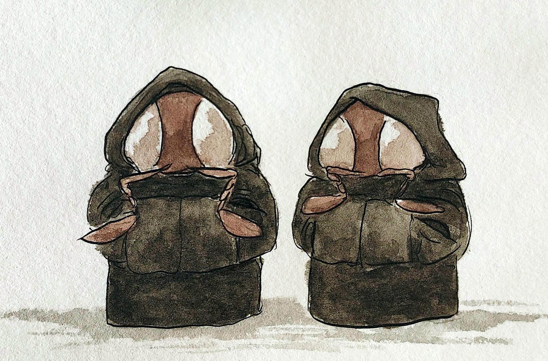 During Goblin Week 2019 I drew a goblin that was a shrew-like creature wearing a baggy robe and holding a spoon, that I creatively called Shrewblin. I liked it enough that it became an occasionally reoccurring character. It wasn't meant to be a monk but the line between a ratty little goblin robe and a monk's habit is surprisingly thin.